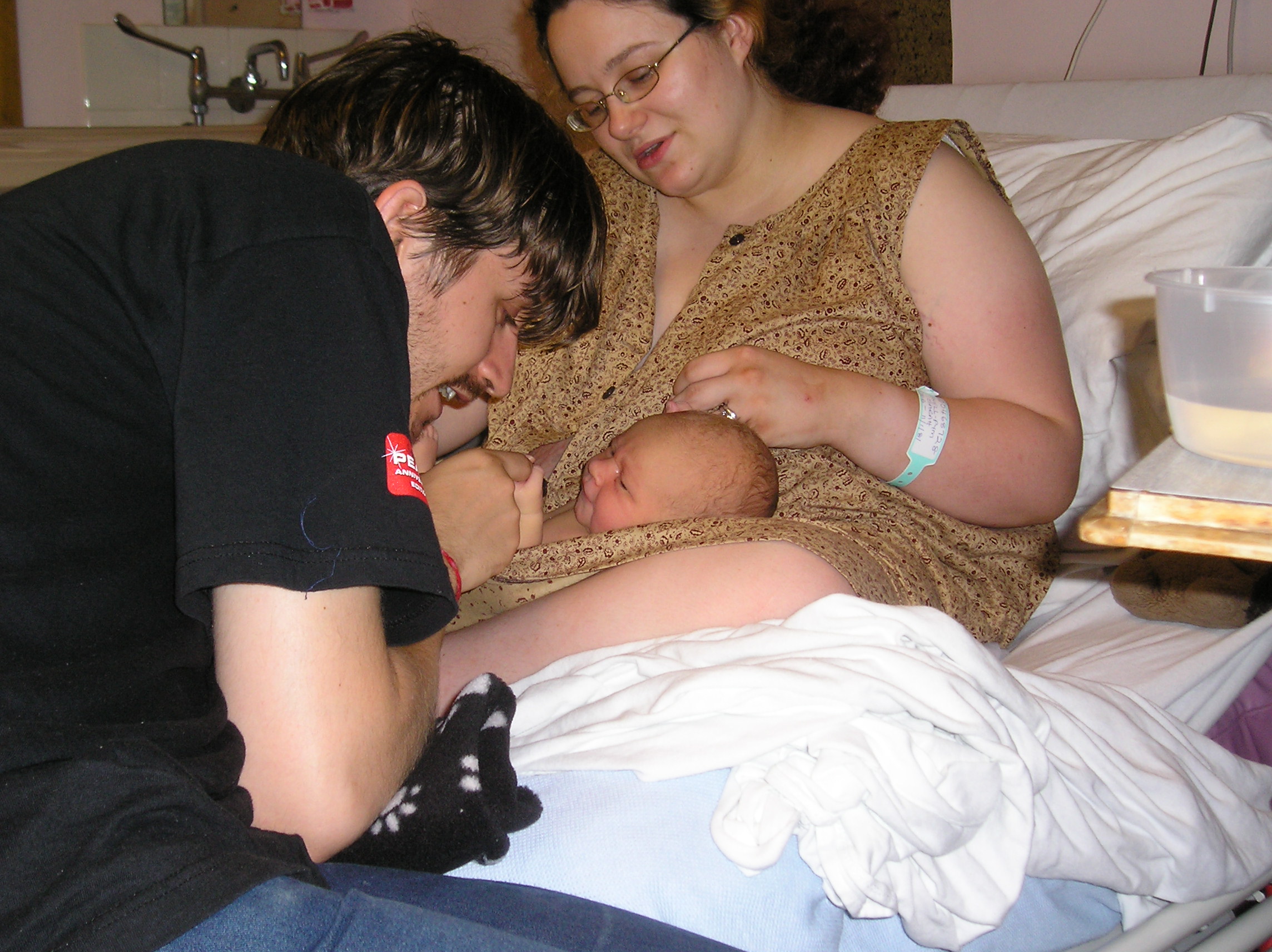 Ah, the joys of the first one. We spent five days in the hospital with the first one, letting the nurses do all the hard work. They were even willing to keep her longer, but she finally got the hang of the basic Mom stuff and so we all went home. Max spent that entire summer naked since it was so warm, and had a fabulous time about it.