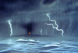 The ancient Greeks believed that the god Zeus would throw down thunder bolts to the Earth which Hepheistus / Vulcan had moulded for him. One theory for the origin of complex hydrocarbons is that the early sea full of phosphate group and other salts would have been bombarded by lightning allow the random synthesis of amino acids and other organic compounds. This was show in Millers Life’s origin experiment where he synthesised amino acids and other organic compounds from passing an electric spark through as reducing atmosphere similar to what is thought to have existed on the early Earth (this is discussed in more detail PREBIOTIC VS THE BIOTIC WORLD).